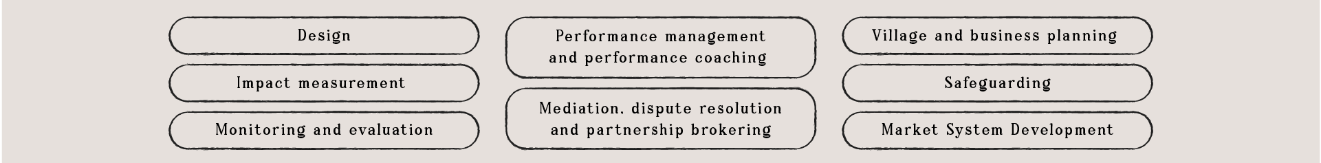 We are design, monitoring, evaluation and impact measurement specialists with over 20 years experience designing and implementing high quality development activities and measuring their results. We support development partners on complex development challenges. We specialise in the provision of the following services: